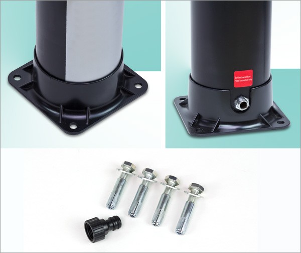 Befestigung der Bodenplatte mittels Dübel (im Lieferumfang enthalten)